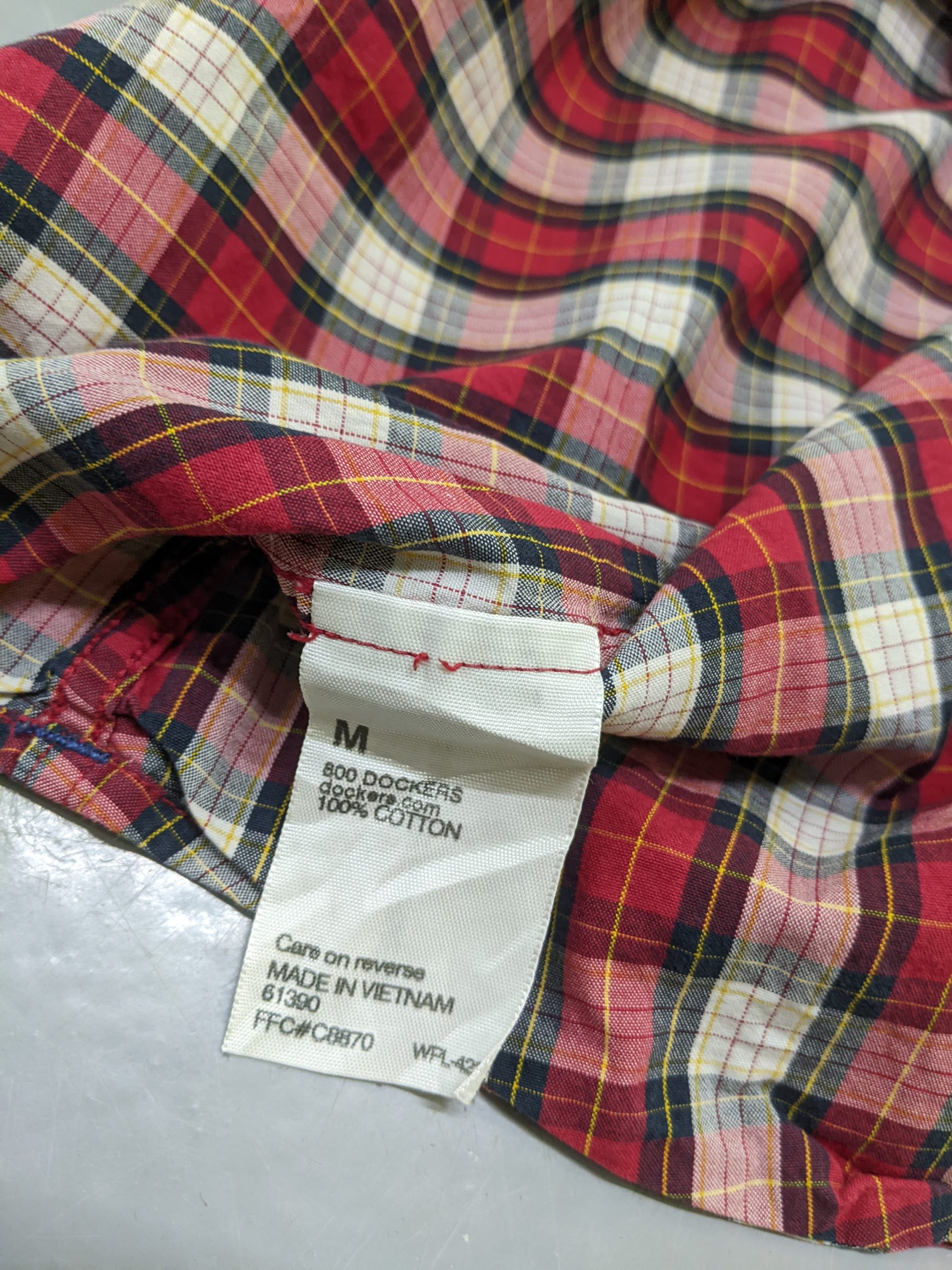 Dockers Mens Shirt Medium Red Check Cotton