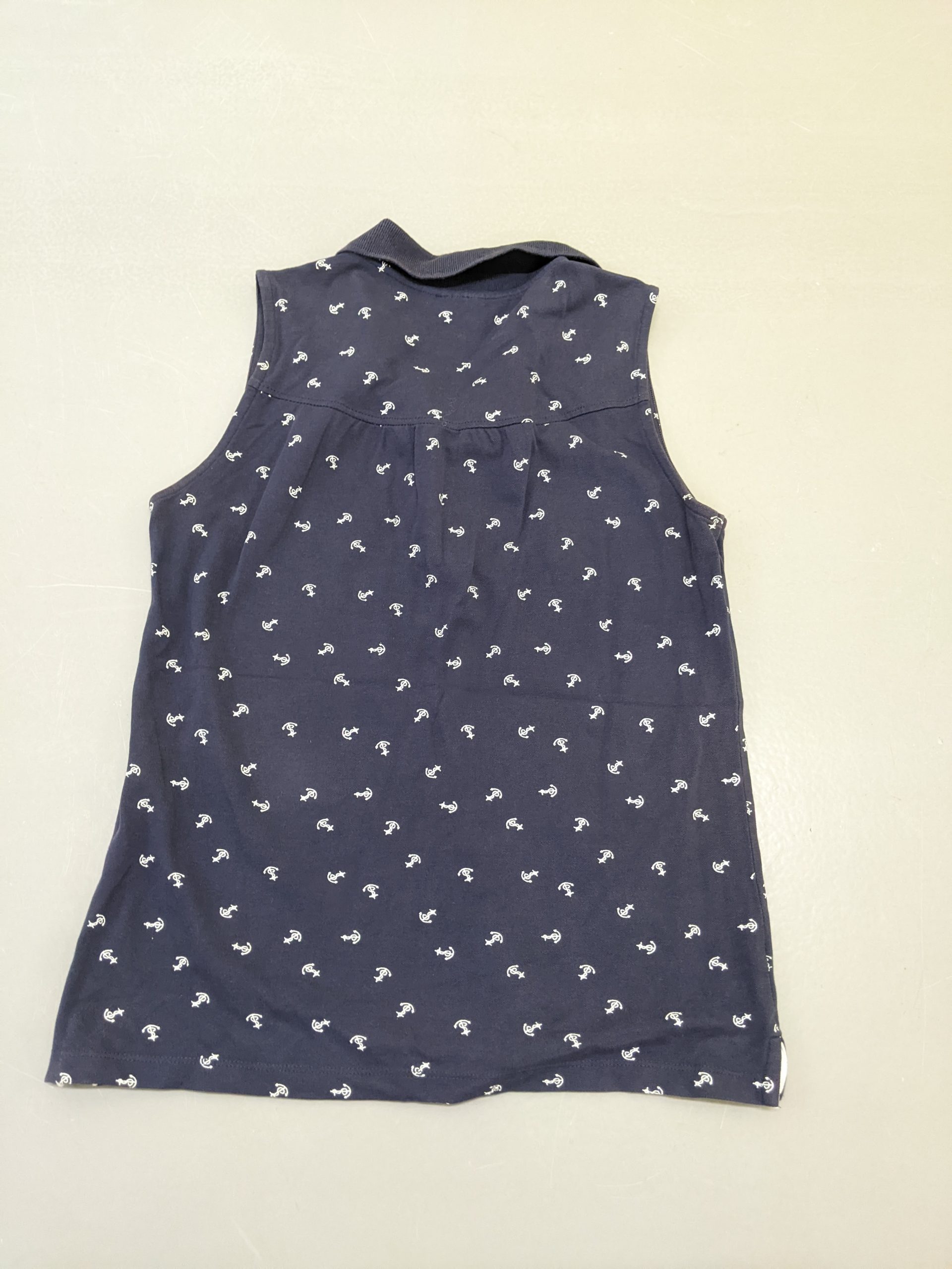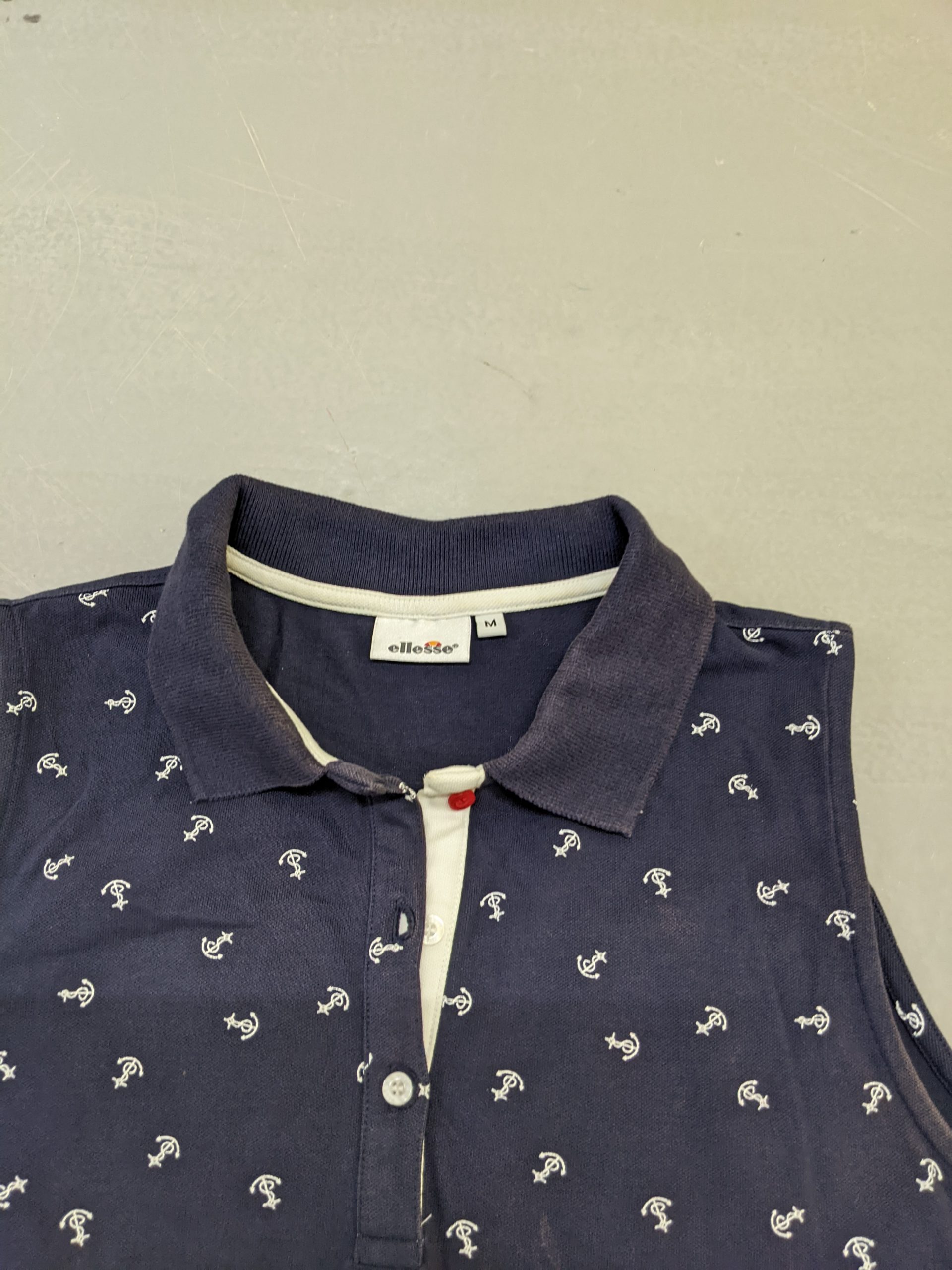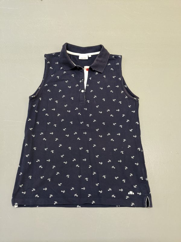 Ellesse Womens Graphic Sleeveless Polo Shirt UK 14 Medium Navy Blue Cotton